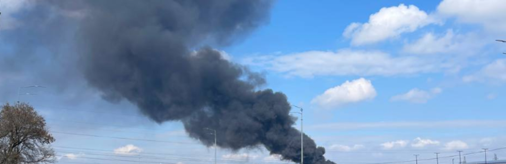 Декілька хвилин тому частину Правого берега міста охопив чорний дим. Кияни викликали службу порятунку поблизу місця його появи. За їхніми словами, надзвичайна ситуація виникла в Голосіївському районі на території промислової зони за адресою: