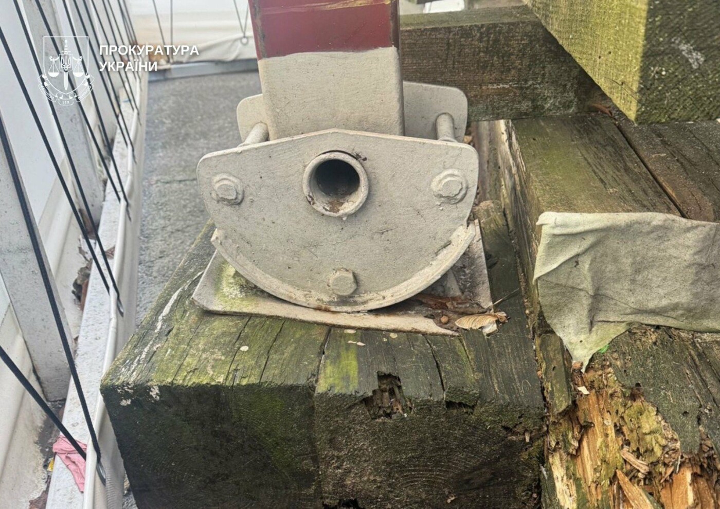 • опорна металева конструкція розміщена на дерев’яних брусах, які перебувають у критичному стані;