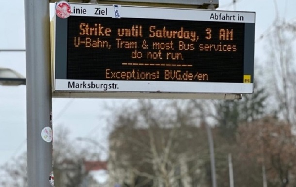 Зазначається, що у найбільшого німецького підприємства громадського транспорту – Берлінських транспортних підприємств (BerlinerVerkehrsbetriebe) – за даними профспілки, страйк уже триває з 3-ї години ночі. Автобуси, трамваї та метро мають залишатися в депо протягом 48 годин.