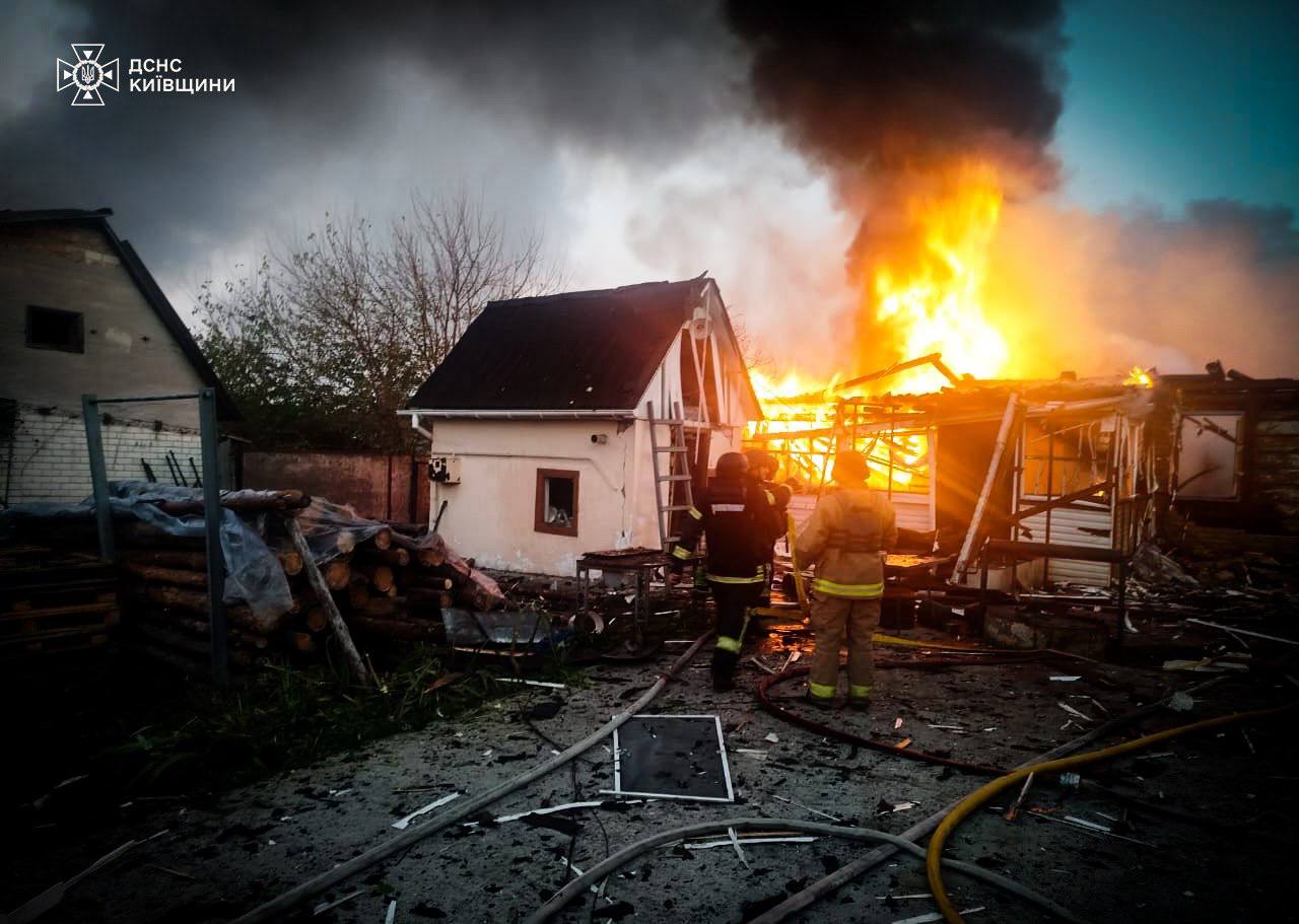 Як повідомили в ДСНС Київщини, також у Броварах постраждала 83-річна жінка, яку рятувальники дістали з охопленого вогнем будинку. У Броварах уламки також спричинили пожежу в приватному будинку та загоряння вантажівки з причепом — усе оперативно ліквідовано.