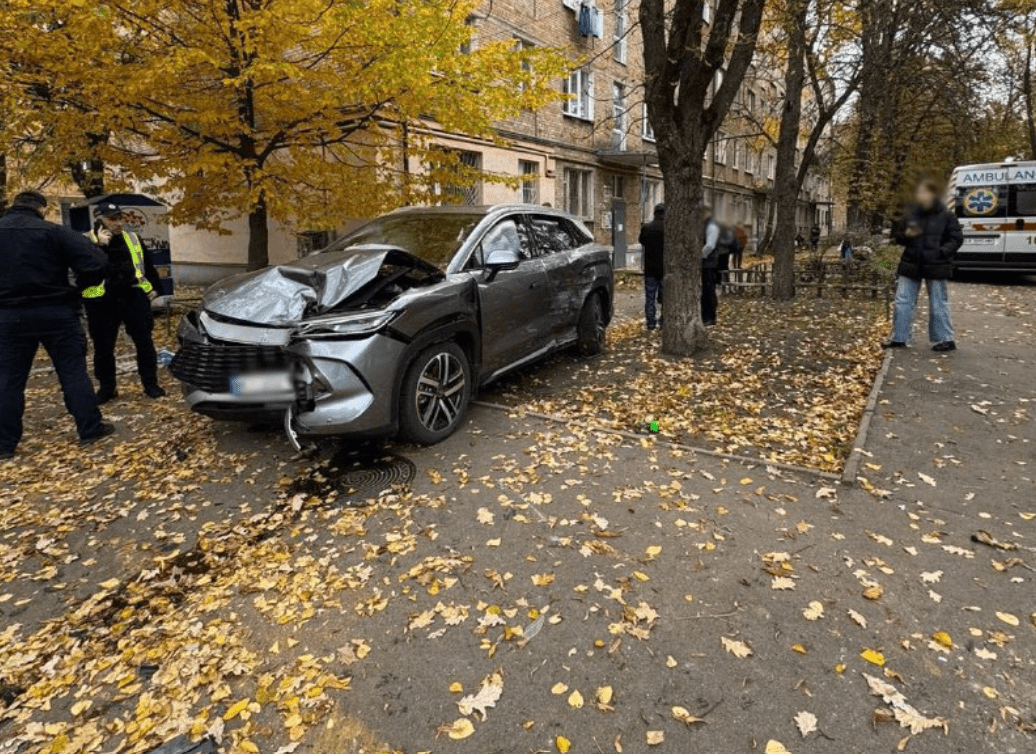 У Шевченківському районі столиці 17 жовтня на вулиці Салютній зіткнулися вантажівка Mercedes-Benz Sprinter та авто BYD. Китайський автомобіль викинуло на тротуар, постраждали троє перехожих, серед них мала дитина. Також госпіталізували водія легковика та його сина.