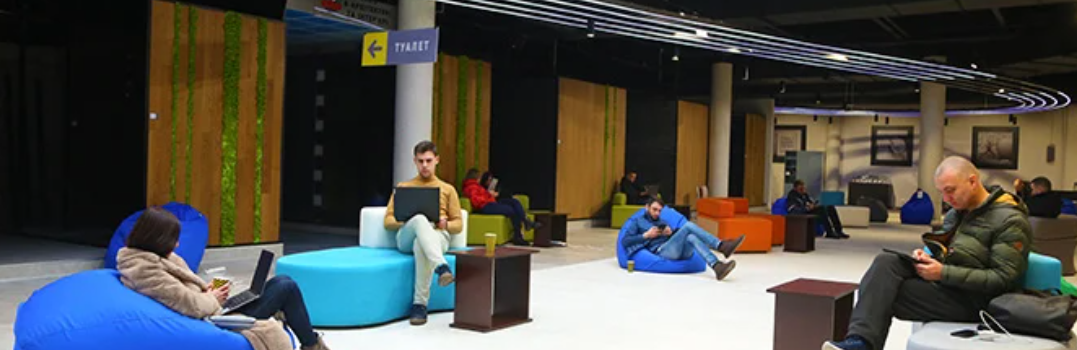 Новий коворкінг має величезну зону для комфортної роботи і навчання. Фахівці Епіцентру попіклувались про те, щоб тут завжди були вільні місця для нових відвідувачів: