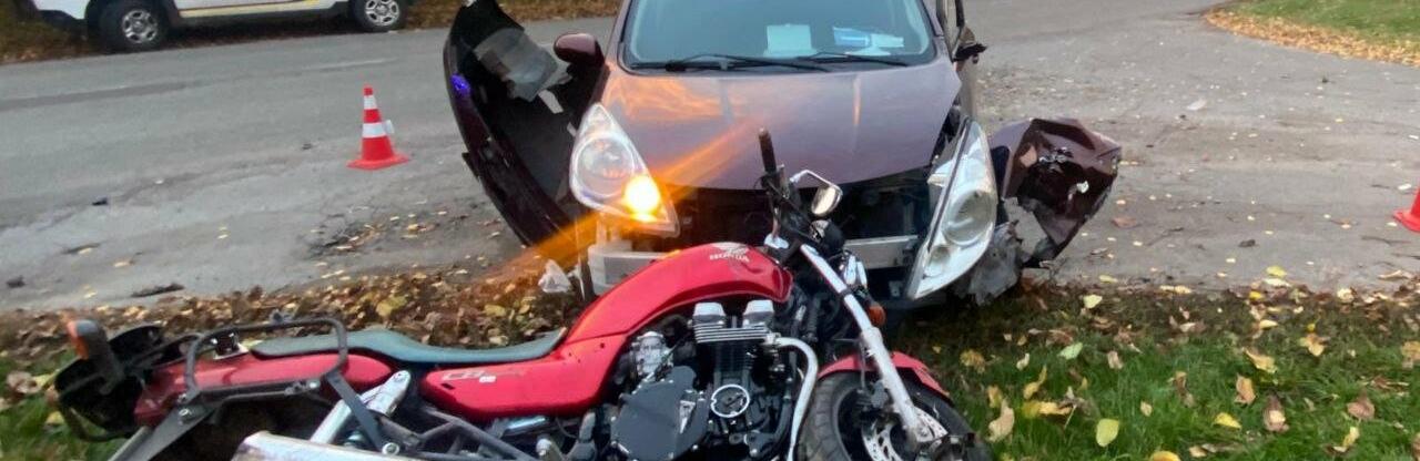 Унаслідок аварії водій мотоцикла отримав тілесні ушкодження та був госпіталізований до медичного закладу.