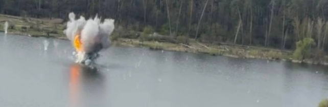 Він пролетів над головами людей і дахами багатоповерхівок, після чого приземлився в озеро Совські ставки, розташоване в Солом’янському районі. Унаслідок цього пролунав потужний вибух!