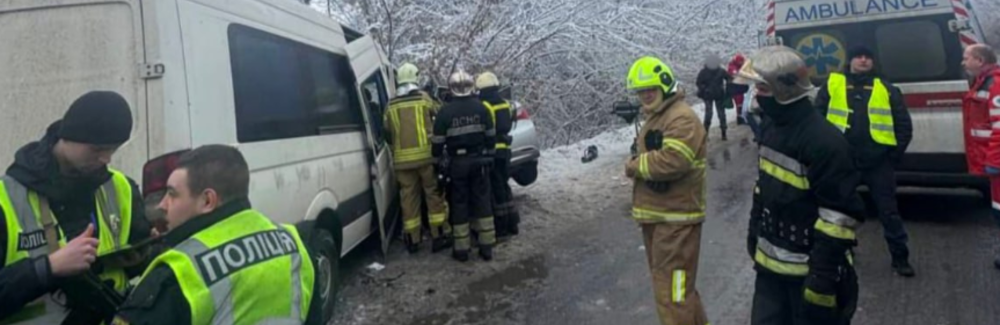 “Наразі відомо про щонайменше семеро постраждалих в мікроавтобусі та дві особи, які перебували у легковику, на жаль, загинули”, – повідомляє поліція Київщини.