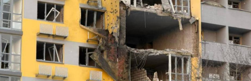 • Уламки пошкодили шестиповерхову офісну будівлю.