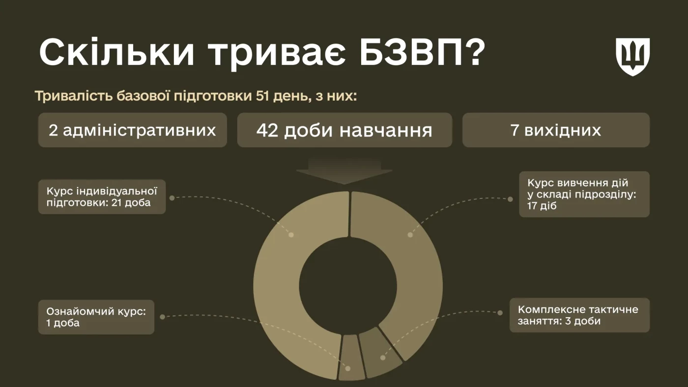 З липня 2025 року тривалість курсу базової загальновійськової підготовки (БЗВП) збільшилася до 51 дня.